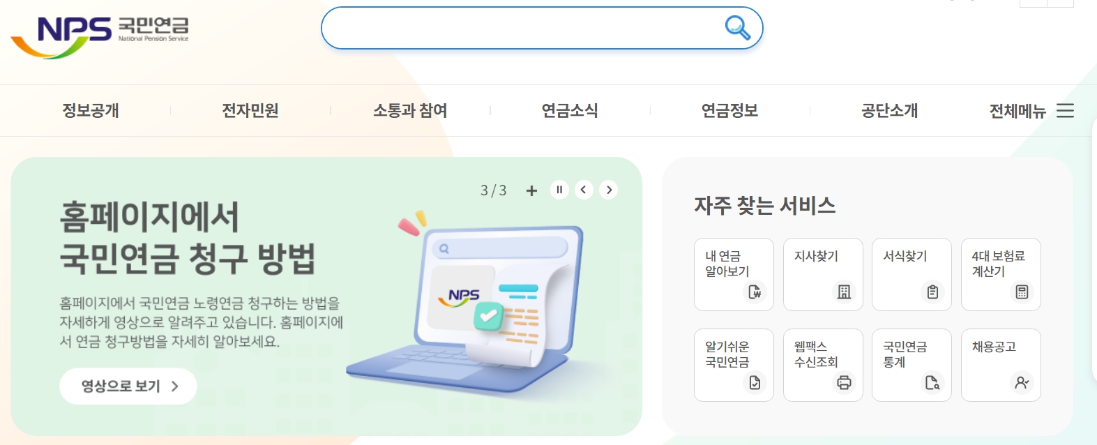 1. 국민연금공단 홈페이지